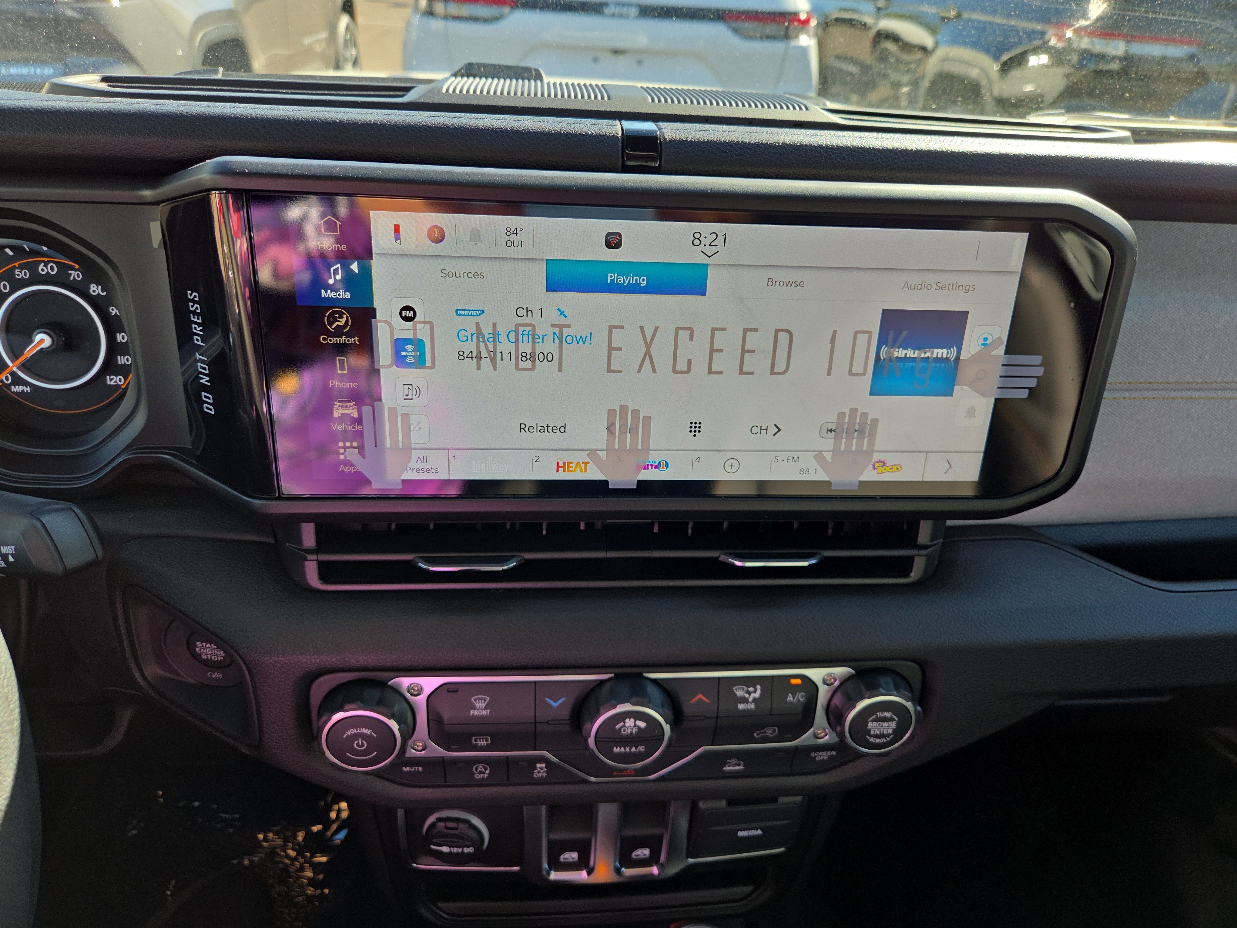 - Radio w/Seek-Scan, Clock, Speed Compensated Volume Control, Aux Audio Input Jack, Steering Wheel Controls, Voice Activation, Radio Data System and Uconnect External Memory Control